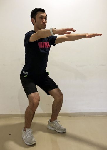 先述の通り、体幹の力を意識しながらバランスを取ってお尻を引くように股関節をしっかり曲げながら腰を落として行くわけですが、このフォームをとにかくゆっくりと時間をかけてください。イメージは下りも上りも各6秒以上が理想的です。しかも、6秒間で各関節の動きを均等に意識しましょう。