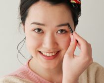 次に眉ですが、細すぎないようにきちんとアイブロウペンシルやパウダーで描き足しておきましょう。眉山(一番高くなるところ)は、目幅の3分の2位よりやや外側が基本。眉尻は目の幅よりもやや外に出るように描きましょう。
