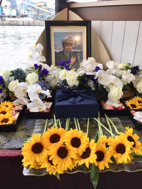 参加者全員でデッキに並び、メインイベントの散骨が始まります。さすがにこの時ばかりは厳かで、うっかり船酔いした私も正気に戻り、ふいに母の顔を思い浮かべてしまいました(まだ母は生存していますが)。