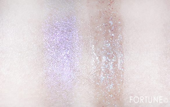 ボトルで見ると、ベースカラーはホワイトですが実際に唇につけるとほとんど色はつきません。なので、手持ちのどんな口紅にも合わせやすいと思います。ブルーにも見えるグリーンラメがキラキラ輝き、一気に華やかな印象にしてくれます。ベタベタしないテクスチャーも高評価ポイントです!