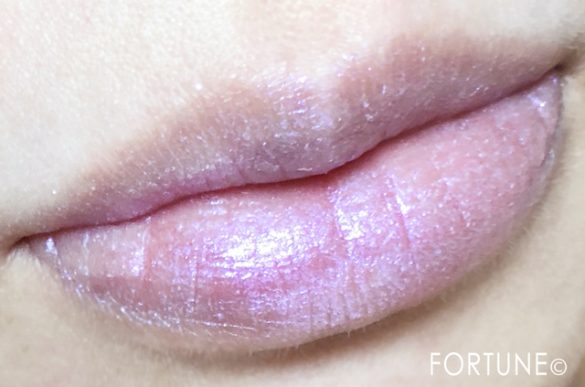 唇にのせると、パープルのパールが少しピンクっぽく変化。単体で使うのも良いけど、手持ちのリップとミックスして使うのも楽しそう! しっとりと唇に馴染んで色持ちも良かったです。