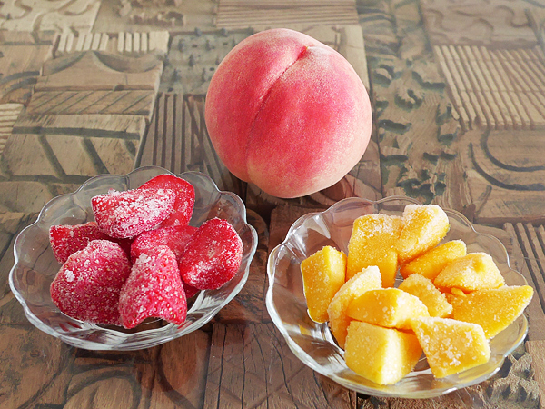 主役となる果物には、夏の旬果である「桃」や「メロン」などがオススメ。安売りの時に買って楽しむのが理想的ですが、もっと気軽に楽しみたい場合には、コンビニでも購入できる「冷凍フルーツ」がオススメ。イチゴ、マンゴー、ブルーベリーなどの美容果物がリーズナブルに手に入ります。