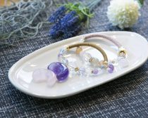 さまざまな天然石から選ぶことができ、水晶などクリアな石を組み合わせることで涼しげな印象になります。