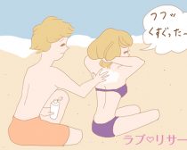日焼け止めやサンオイルを塗り合う