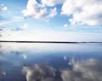 遠浅のビーチで海面に空が映し出される池治海水浴場は、まるでウユニ塩湖のよう