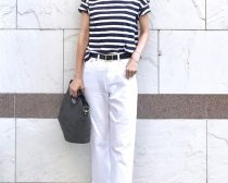 まずは街にあふれている見飽きたボーダースタイルは選択しないことです。街にあふれているのはボーダーシャツ、ジーンズ、スニーカー、またはボーダーのTシャツにウエストがゴムのロングスカート、そして寒ければトレンチコートという判で押したようなスタイルです。