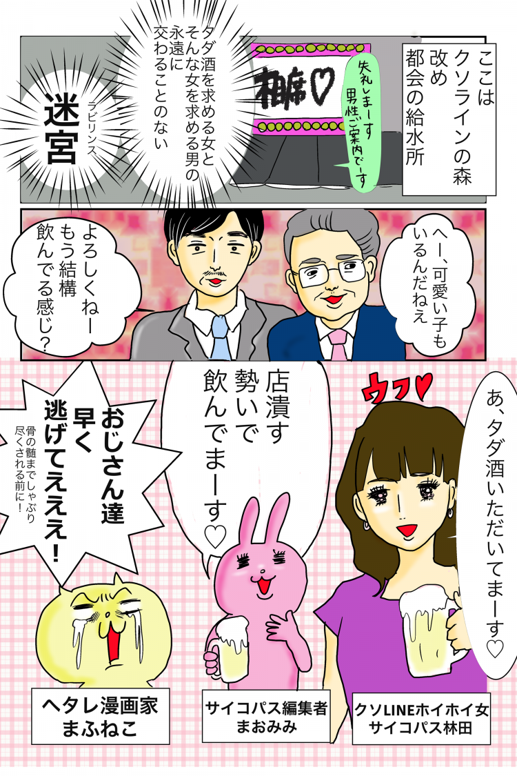 前編では相席居酒屋でタダ飲み&腹ごしらえを済ませた「まふねこ」と「まおみみ」。クソLINEホイホイのジョセフィーヌは「スマートなイケメンのなんの変哲もないLINEよりおじさんのほうがおもしろい」と語るが……