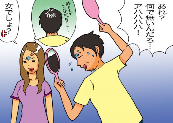 「Yがあわてて『えっ! 嘘!?』と飛び起きて、合わせ鏡で後頭部を見ながら『あれ?なんでだろうね…アハハハ!』と明らかに変なテンションで挙動不審なので…これは怪しいと感じました」