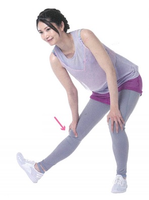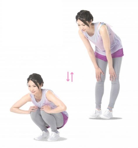 両足を少し開き、膝に手を当てて10回繰り返す。