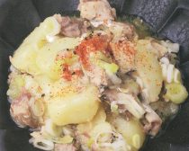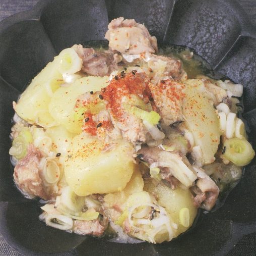 2 鍋に油を熱し、じゃがいもを透き通るまで炒める。透き通ったらAを入れ煮立て、フタをして弱火で12~15分ほど煮る。