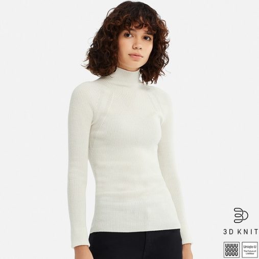 ▼3Dエクストラファインメリノリブハイネックセーター(長袖) 3,990円