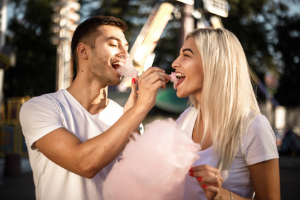 Aさん: You know, that colorful fluffy food made by sugar?(ほら、あれ何だっけ、カラフルでふわふわした砂糖で出来ている食べ物)