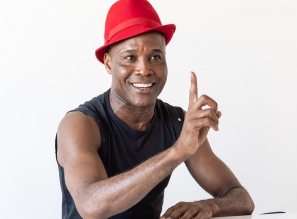 体にフィットするウェアと真っ赤なハットでポジティブなオーラを振りまく、ビューティアドバイザーでトレーナーのスティーブン・ヘインズさん。「いつでもどこでも何分でも、楽しみながらやることが大事!」と私たちを勇気付けてくれました。