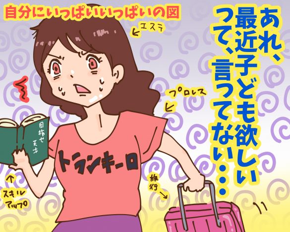 でも今は、仕事への向き合い方を変えて、改めて頑張らなくてはいけないタイミング。自分の忙しさに手一杯で、子作りという計画に気持ちがむかなくなっているのかもしれません。