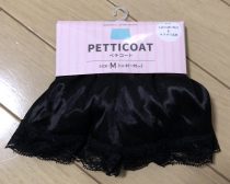 キャンデゥのペチコートは黒とベージュの2色展開ですが、筆者は黒を購入。丈は23㎝と短めのショートパンツタイプで、レースも付いていてデザイン性があります。 ペチコート レースがついたペチコートって、レースのデザインと長さによってはおばさんっぽくなってしまうのですが、これは見た目がかわいいです。履き心地はやや浅めですが、安いレース特有の肌に当たるとかゆい感じがまったくありません。値段のわりにはき心地は優秀。  丈も短いのでミニスカートの下からはみ出る心配もなく、軽い穿き心地なのが筆者的にポイントが高いです。