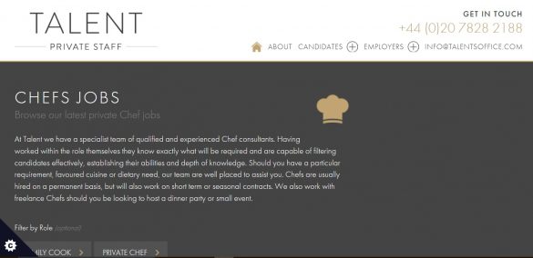 「トップシェフ募集、VVIP(超重要人物)顧客への専属シェフ経験必須。ロンドン拠点。必要時にはアメリカへの移動あり」