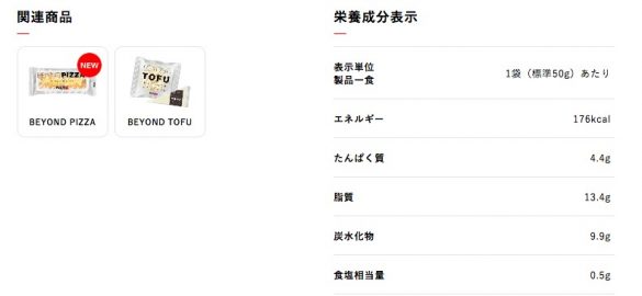栄養成分はこちら。相模屋食料株式会社HPより(https://www.sagamiya-kk.co.jp/products/beyond_pizza.html)