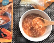 スープリゾット 海老のビスク 最初に紹介するのは、カルディオリジナル商品の「スープリゾット 海老のビスク」343円(税込み)。アルファ化米(乾燥ごはん)とリゾットの素(粉末)が3セット、小分けの袋に入っています。  作り方は、アルファ化米とリゾットの素を1袋ずつ器にあけ、熱湯160mlを注いでかき混ぜ、3分待つだけ。  湯を注いだ時点からすでに海老の香ばしいいい香りが漂い食欲がそそられるのですが、実際に口にしてビックリ。とても濃厚な海老の風味が感じられるスープは本格派の味わい。モチッとした米によく絡んで本当に美味しいです。  クリーミーさも手伝って、1食分で十分な満腹感を得られるのですが、カロリーは118kcalと低め。仕事で疲れて帰ってきた後に料理をするのは面倒ですが、これなら手軽に美味しくいただけます。夜食にしても安心のカロリーですね。