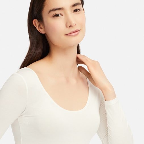 ユニクロのヒートテックの首まわりは初期のものから年々広くなってきていますが、GUと比べると浅いです。