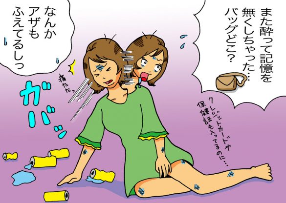 その他にも、やはり記憶を無くしたまま買い出しに行き…翌朝、クレジットカードや保健証を入れた財布やバッグがどうしても見つからなくて探していたら、自転車のカゴに一晩置きっぱなしだった事もあるそう。