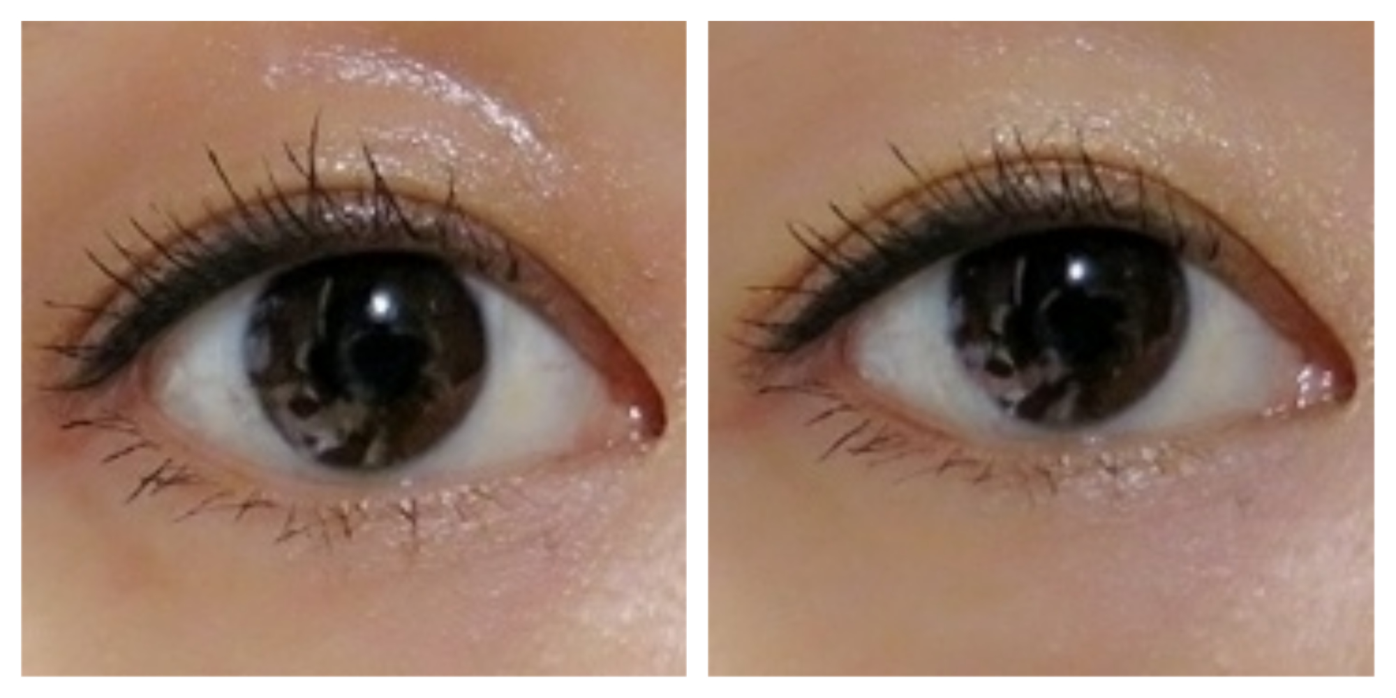 写真左はグロッシーな濡れまぶたアイシャドウを使用しています。セクシーというよりも、なんだか下品に見えてしまうのです。また、まぶたのくぼみを強調して老け顔に見えてしまうというデメリットも…。
