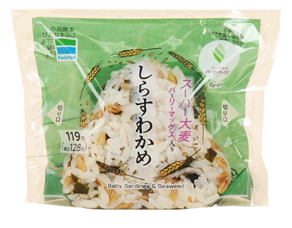 ●スーパー大麦しらすわかめ(ファミリーマート、税込128円)