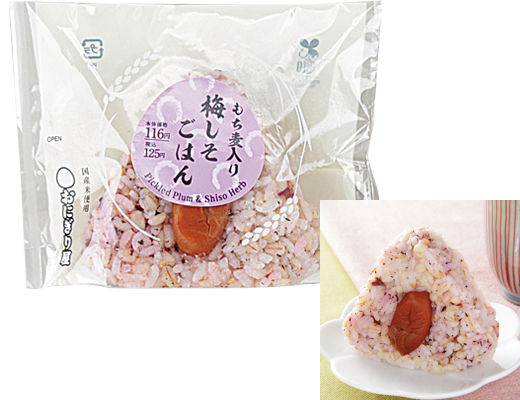 ●もち麦入り梅しそごはんおにぎり(ローソン、税込125円)