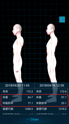 - 体重も体脂肪率もダウン。