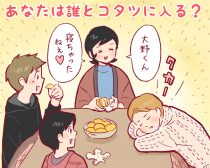 ・正面……佐藤勝利さん(Sexy Zone) ・右側……岸優太さん(King&Prince) ・左側……大野智さん(嵐) 「正面はずっと顔を見ていたい勝利くん(足でちょっかいを出す)、右の岸くんはコタツの中でそっと手を握り、左の大野くんは、居眠りする寝顔を拝みたいですねっ!!」 ===  うわ! 最後の人、一段とキモい下心を感じますね! これ考えたの誰!?……と思ったら私でした(笑)。エヘヘ!!  ちなみに、正面は顔を眺めていたい人、右側には話しやすい人、左側には頼りになりそうな人を配すとバランスがよさそうです(私感ですが)。  日増しに寒くなる今日この頃、しばし熱い想像で遊んでみると、いい息抜きになりますよ! あなたなら、どのジャニーズとコタツに入りたいですか……!? <文/みきーる イラスト/二平瑞樹> ⇒この著者は他にこのような記事を書いています【過去記事の一覧】
