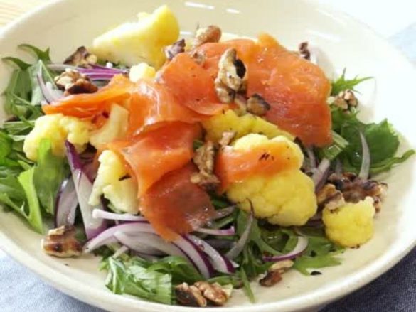 簡単調理で作る前菜をご紹介します。「サーモンとカリフラワーのサラダ」は、お皿に盛って調味料を合わせるだけの簡単レシピ。