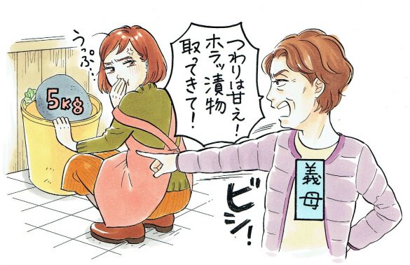 「漬物を取ってきて」と言われたときは、重い漬物石を持つことにさすがに躊躇(ちゅうちょ)し、旦那さんも「妊婦にやらせることじゃない」と言ってくれたそうですが、義母は一蹴。