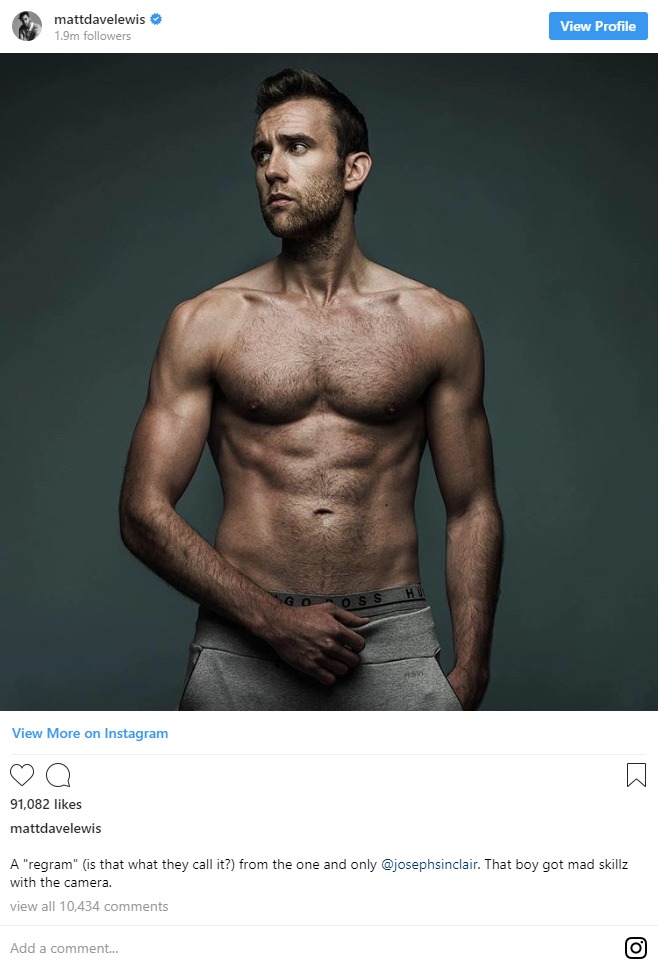 日本でも大人気のハリポタシリーズでネビル役を演じてきたマシュー。役どころによるものなのか、なんとなく「どんくさい」イメージがついていたが、それを刷新したのがこの写真だ。