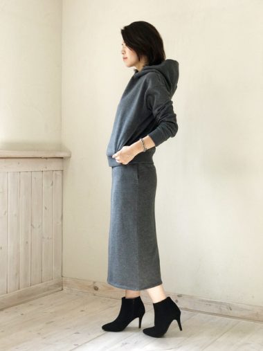 また、トレーナーは厚手のジャージーのような編み地でできていることが多いので、ボトムには織り地を持ってくるようにするといいでしょう。トップスもボトムとジャージーにしてしまうと、リラックスした感じはありますが、きちんとした感じは少し減ってしまいます。