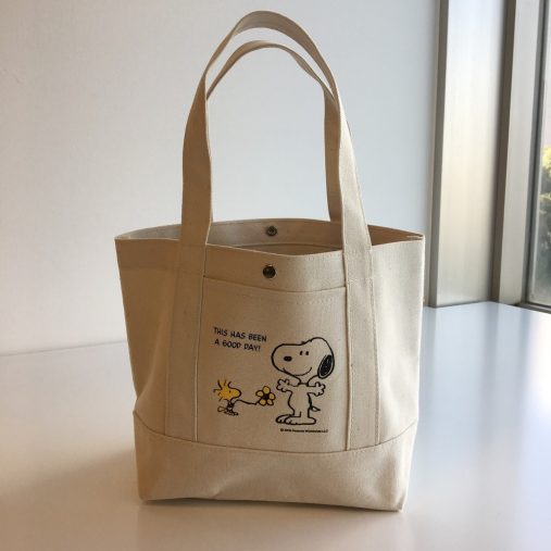 そのスヌーピーと、仲良しのウッドストックが寄り添った、なんともキュートな厚手のトートバッグ。