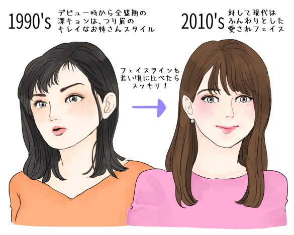 今の深田恭子さんは確かに可愛いし、溢(あふ)れんばかりの若々しさがあります。いっぽうで、アラサー世代より上のみなさんは今の彼女をみて、「あれー? こんな顔だったっけ?」と、どこか違和感を抱きませんか? そこで、深キョンのとくに全盛期であろう90年代後半~2000年代の過去映像や写真を確認してみたところ、メイクに大きな違いがありました。