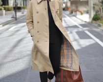 特にベージュとバーバリーチェックにこだわっているので、その徹底したベージュとチェックの色合わせのテクニックは、ベージュをモードに着こなすにはどうしたらいいかのヒントがたくさん詰まっていました。  冬のコートを脱ぎたくなるような日もふえる今ごろの時期、バーバリーでなくとも裏地やライナーにチェック柄が使われているトレンチコートやステンカラーのコートを持っている方も多いでしょうから、ここでそのコートのチェック柄と、その他の色のアイテムとの色合わせについて学びましょう。