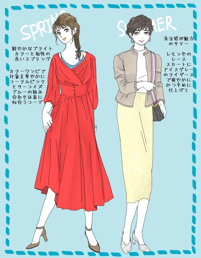 さて前置きが長くなりましたが、スプリング・サマー・オータム・ウィンターのタイプごとにオススメのコーデを見ていきましょう!