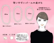 慶弔時に使えるアクセサリーとして重宝されるパールアクセサリー。風習やしきたりによって取り入れかたはさまざまあるのですが、基本的に冠婚葬祭で使用できるもっともフォーマルなパールは、40cmの一連タイプのネックレス。玉のサイズは7mm~8mmが標準で嫌味のないものになります。最近では本真珠さながらの美しさを放つイミテーションパールもかなり多く出回っているので、本物かイミテーションかにこだわる必要はなさそうです。