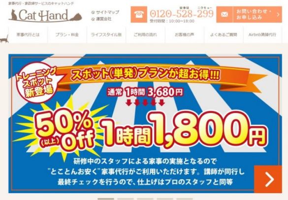 特徴:自宅訪問型の事前ヒアリング(無料)があり、対応の丁寧さが魅力。5200人を超えるスタッフが在籍していて、各家庭のこだわりや家庭の味を大切にしてくれる。朝食・昼食・夕食などの用意、作りおき、下ごしらえなどの半調理など、オーダーメイドで依頼できる。買い物代行や台所掃除も併せて利用可能