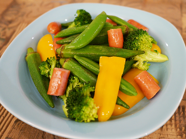 お好みにより、野菜以外に肉や魚介を加えてもおいしく仕上がります。野菜が苦手な人には、ベーコンやソーセージを加えると、俄然親しみすいテイストになるでしょう。