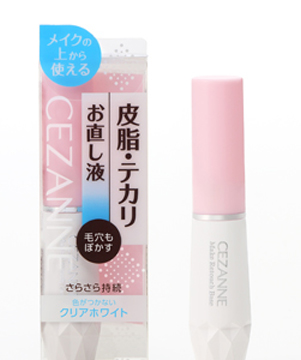セザンヌの「皮脂テカリお直し液(¥580)」です。化粧下地を塗った後、こちらを部分使いしているのです。額や鼻など、毛穴が気になる部分にオン。ナチュラルに毛穴カバーしてくれて、かなり便利。