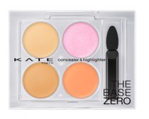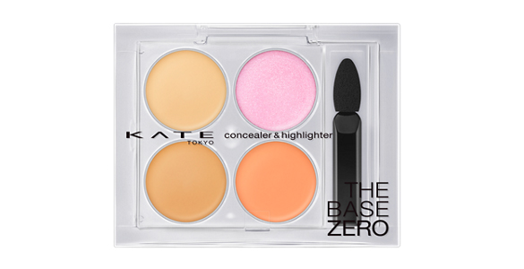 KATEの「レタッチペイントパレット 01(¥1,500)」。まずはクマから。右下のオレンジでしっかりカバーし、左上の淡いベージュをポンポンと重ね塗りします。こうすると、かなり馴染みが良いんです。