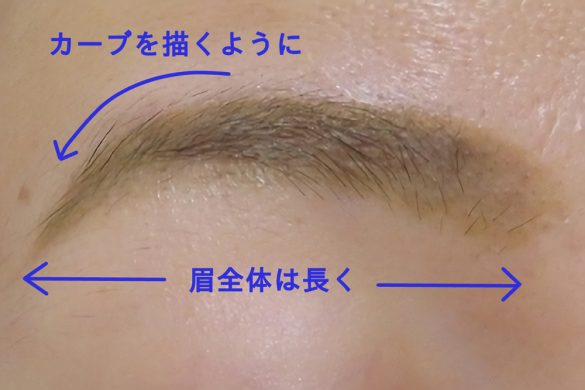 次はアイブロウメイク。ポイントは、長めのアーチ眉にする点、濃いめに描く点です。