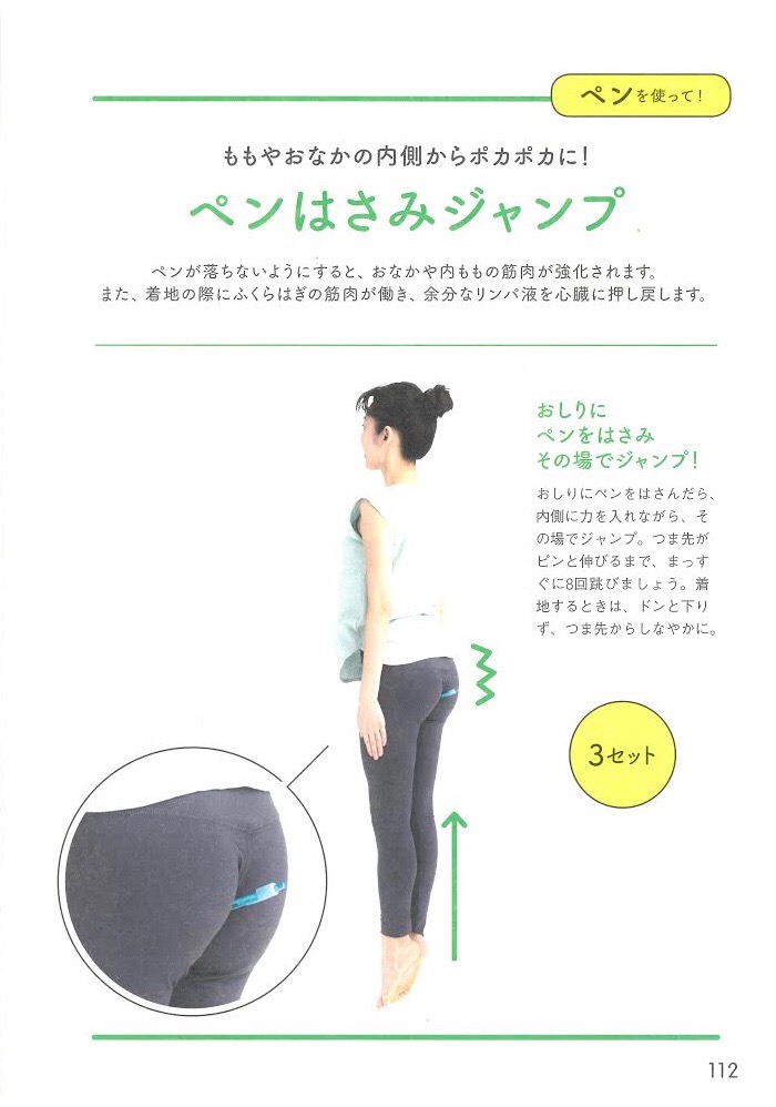 勿論、私もやってみましたよ。おしりにペンをはさむって、けっこう難しいんですよね。しかも、少し動くだけでもペンが落ちそうになるので、油断はできません。ペンをはさまないで肛筋に力を入れるのと、ペンをはさんで肛筋に力を入れるのでは、筋肉の使い方がまったく異なるのです。ちょっと恥ずかしい体操ですが、効果は期待できそう。