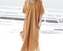 ではどうしたらいいか、そんなふうに考えていて見つけたのがこのトリーバーチのカフタンのルックです。