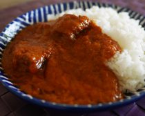 ①バラ先軟骨のバターポークマサラ(カルディ) 321円(税込)