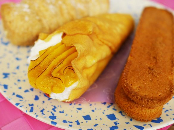 ファミマでは、細長いワンハンドスイーツがバリエーション豊富にそろっています。王道ながらも、テイストがちょっぴりユニークなクリームサンドは、男女問わず人気を博しそう。
