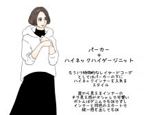 ただ一点、例年と違うのはインナーにボトルネックもしくはハイネックのインナーを取り入れるという新しい着こなし。フードからチラっと見えるとオシャレに感じるので、こちらもぜひ取り入れていただきたいスタイルですね。