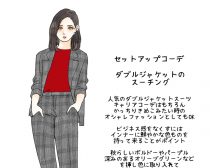 一気にキャリアウーマン感が出るセットアップといえばスーツのセットアップ。とくに一昨年頃からはダブルジャケットのセットアップがオシャレさんを中心に人気が高まっています。仕事着としてはもちろんのこと、キレイめコーデの新定番としてもぜひ取り入れていただきたいコーデですね。
