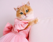 美しいピンクのドレスに身を包んだ猫ちゃん。まるで「一緒に踊りましょう」と誘っているよう。頭にはちょこんと添えられているリボンは猫ちゃんのかわいさを見事に引き立てています。愛くるしいこの少女のハートを射止める王子様は、一体どこにいるのでしょうか。